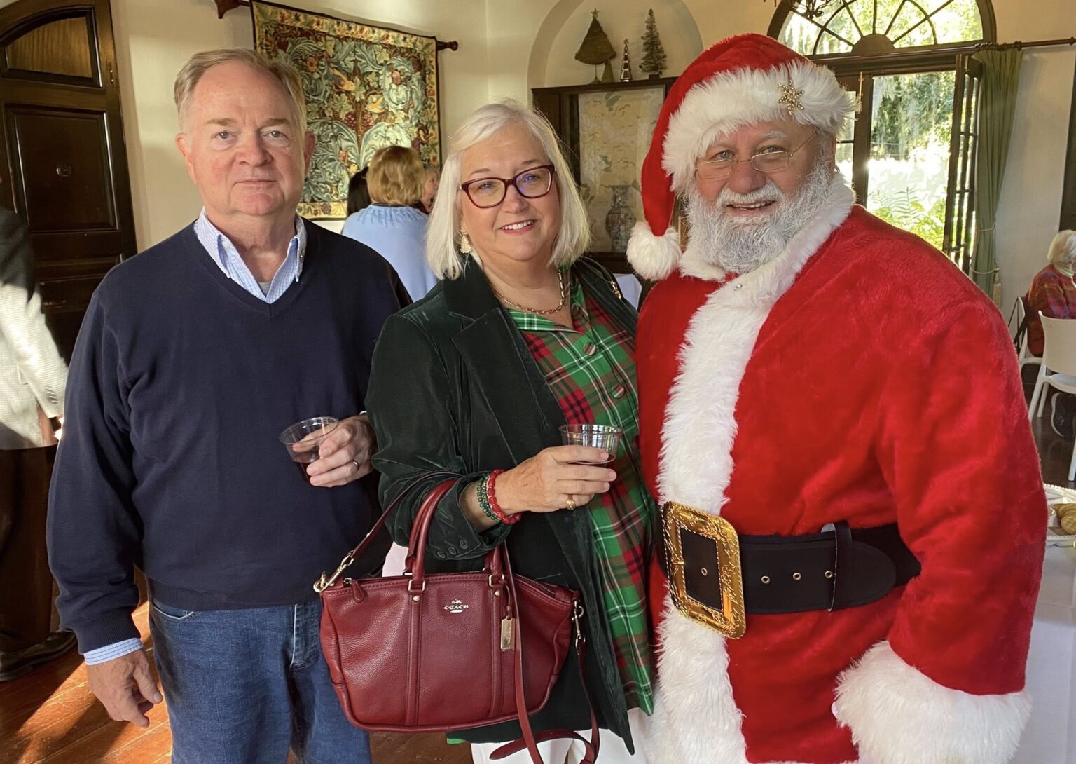 Santa paid a visit to the FOHJI Members Only Holiday Party at Villa Ospo. Pictured are David Williams, Pamela Harris, and Santa, aka Sims Harris.