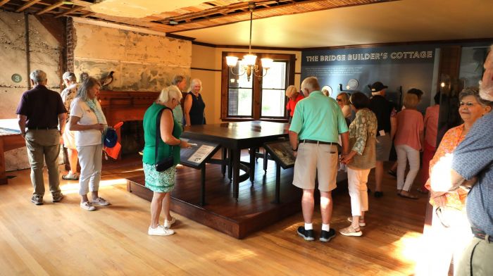 On the trolley tour through the Historic District, Will Wagner and Taylor Davis highlighted projects FOHJI had contributed to. The tour included a stop at Hollybourne Cottage where attendees viewed the new signage and exhibit.