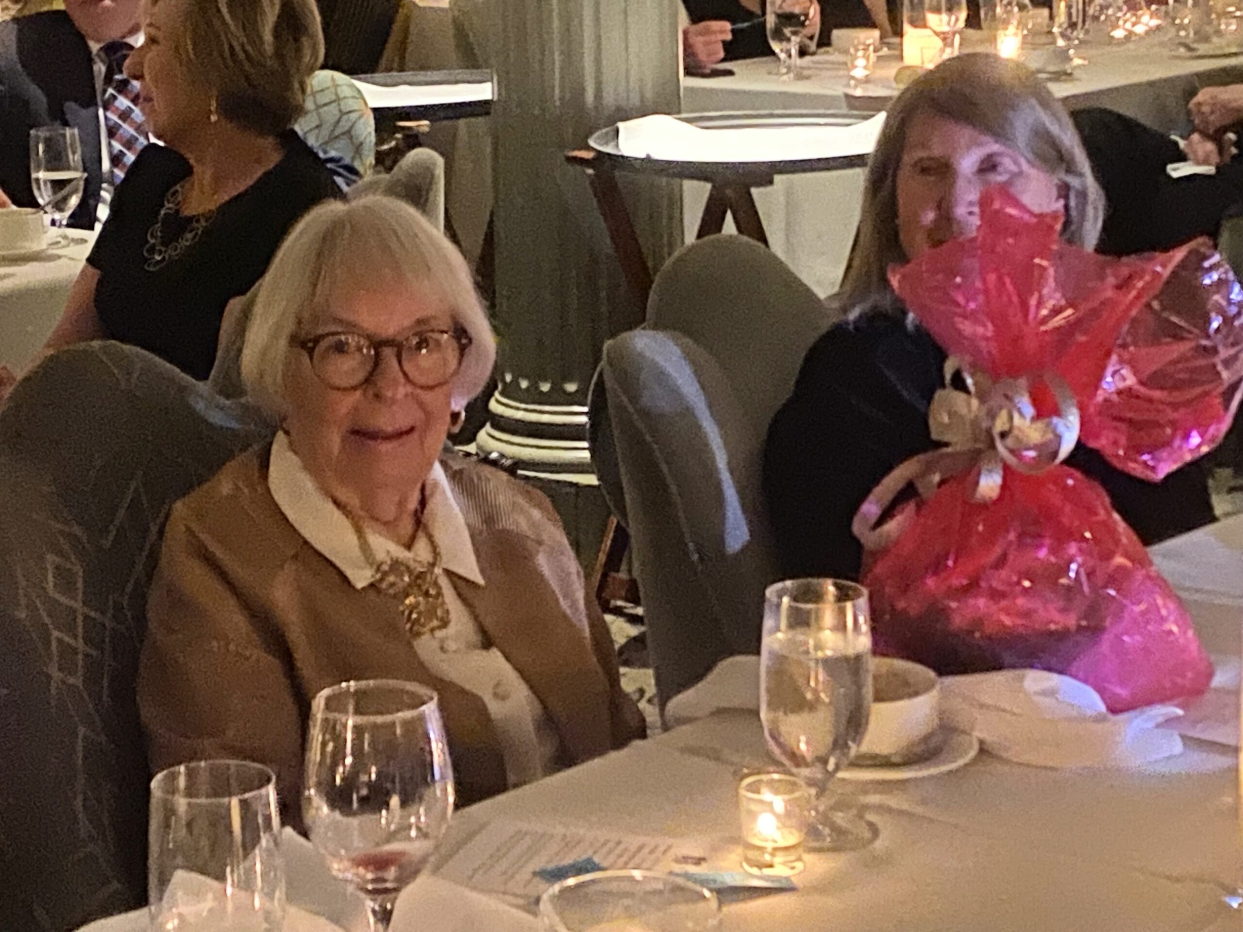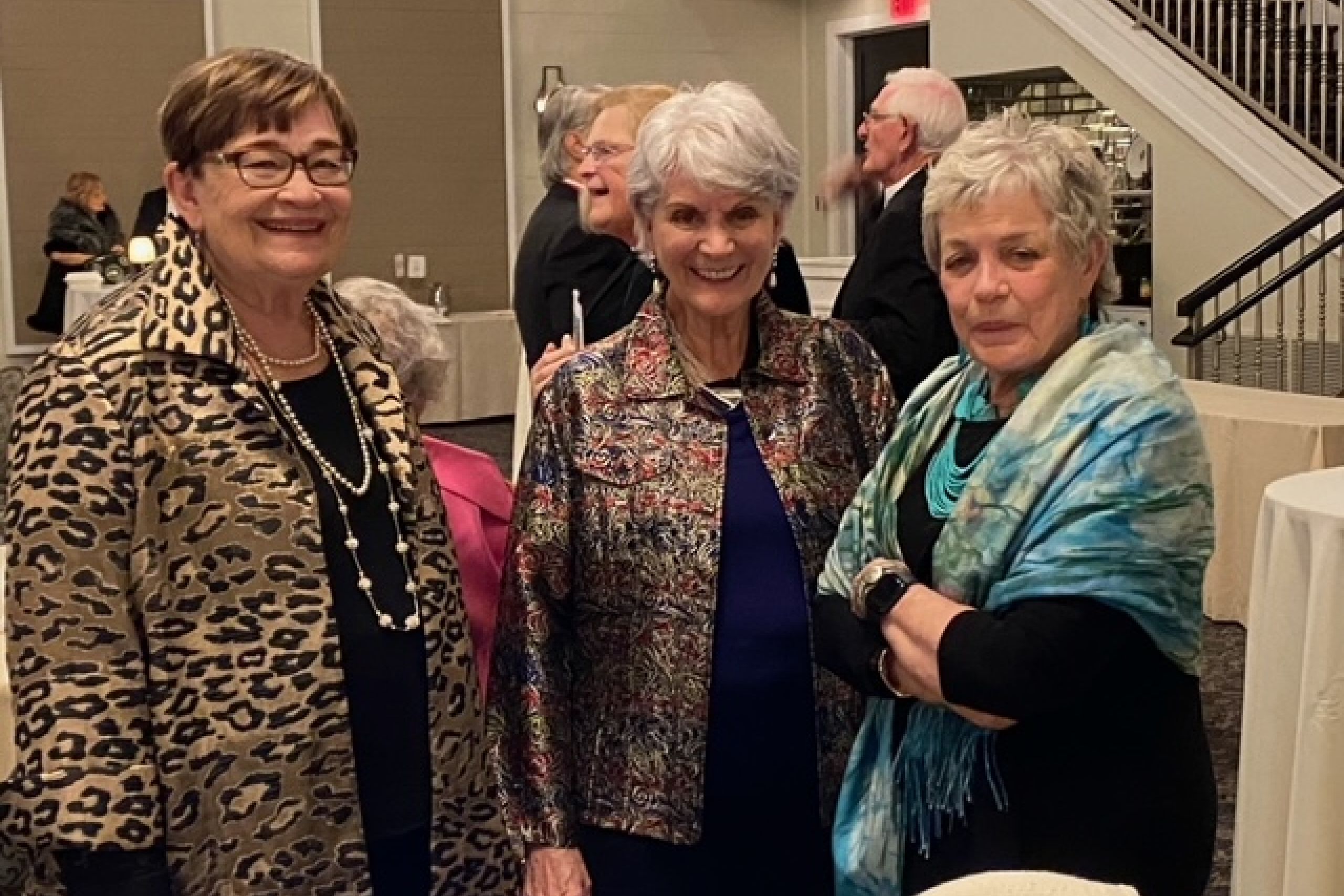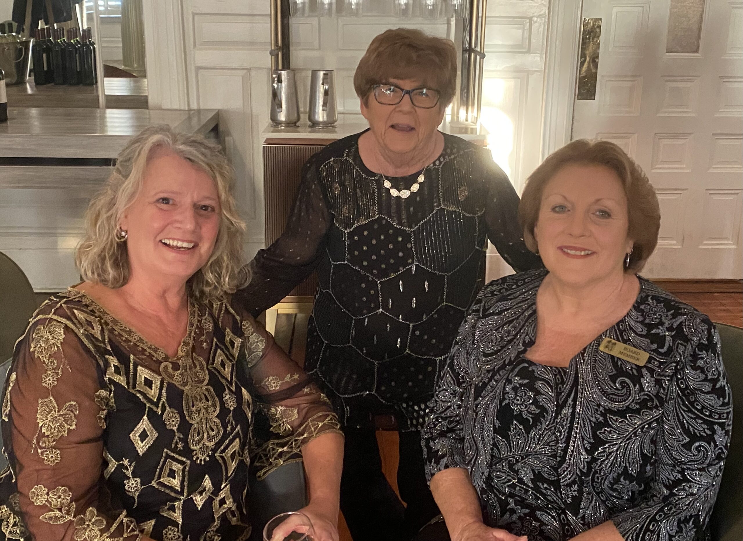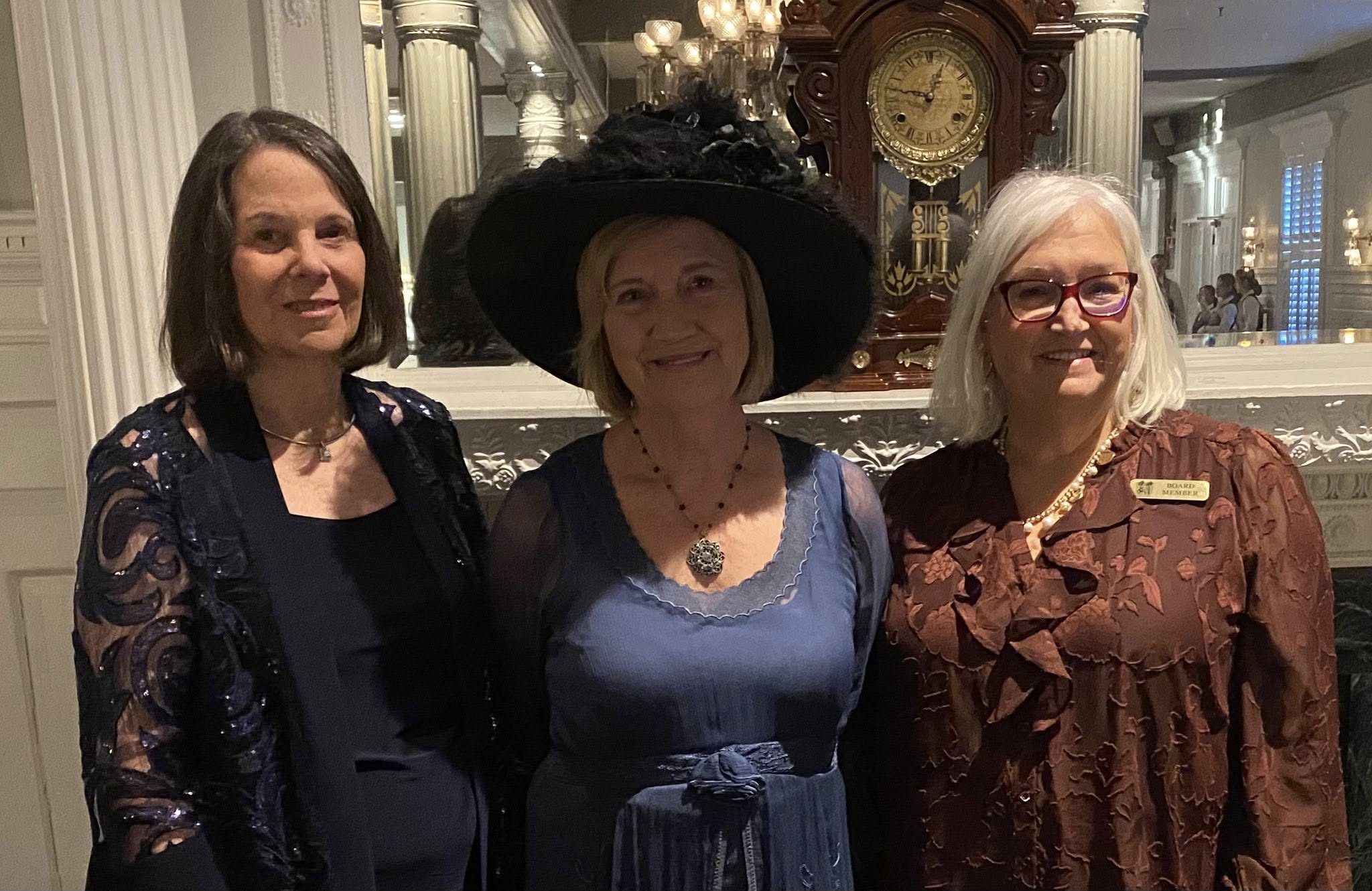 FOHJI President Ruthmary Williams, “Sarah Gould”, and Dinner Chair Pamela Harris